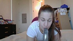 texas babe spreads legs wide, shaved pussy teased close-up with big dildo on webcam