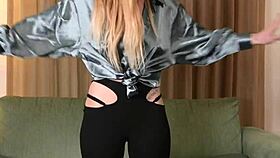 hazel ash poses sexy in shiny shirt and leggings