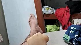 Arab milf lets jerk off to feet