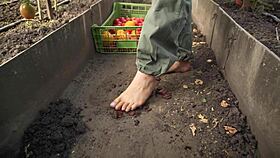 oh damn, squashing juicy tomatoes barefoot in dirty ranch soil!
