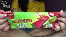 she stuffs ice cream deep in beautiful pussy closeup