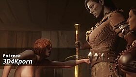 Futa3dx - brunette futa prays to blonde goddess to come fuck her hard in deepthroat and bent over.