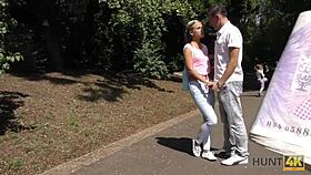 Amazing teen pickup in public outdoor reality show