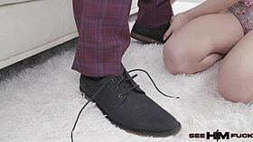 Husband fucks girlfriend's ass roughly on the floor.