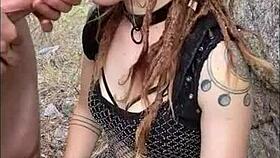 Drooling on huge cock ruins my festival outfit! Gagging deepthroat cum swallow!!