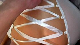 showing my slutty new underwear to husband's friend while he fucks my tits pov closeup