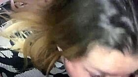 latino ladyboy giving intense blowjob to big cock
