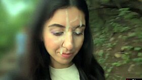 eurobabe gets sticky cum all over her pretty face in mess