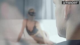 wife cheats under blindfold hubbys nose
