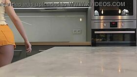 Hot Blonde Legs Tease Miniskirt Ass In Kitchen Heels