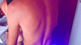 How does self-pleasure feel in nude oil shine pantyhose, masturbating with big clit and saggy tits?