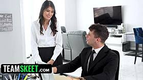 desperate for change she begs boss for deep creampie at work