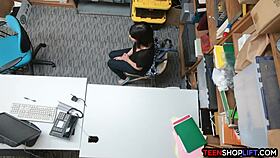 Hot skinny teen shoplifter caught and fucked by guard