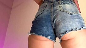 damn, perfect booty shakes wildly in those mini jeans shorts!