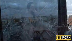 hot lesbians toy shaved pussies on balcony with piercings