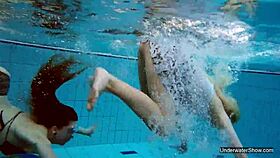 Hot hungarian teen 18+ dives underwater for shaved pussy pool teasing.