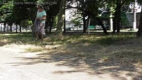 wanna see this hairy mature chub flash her fat pussy through see-through dress outdoors?