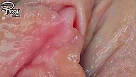 Close-Up Beautiful Shaved Creamy Wet Pussy Dildo Vibrator Masturbation