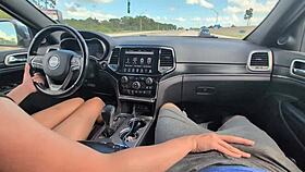 Girlfriend delivers messy handjob huge cumshot during car drive