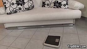 Busty bbw babe sensually toys her plump pussy