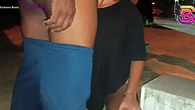 punheta arriscada para safada na rua que estava no ponto de ônibus
