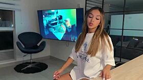 Asian Babe Rides Monster Cock
