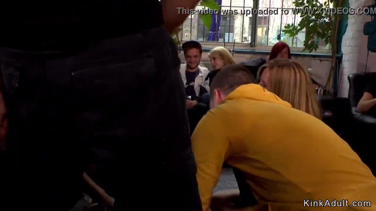 Want to see a cute blonde teen in a public gangbang?