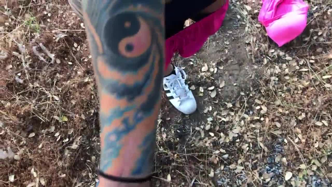 hottie brunette babe sucks cock then gets assfucked outdoors, squirting hard