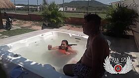 public jacuzzi lover blowjob doggy bareback pussy fuck outdoors with bbw